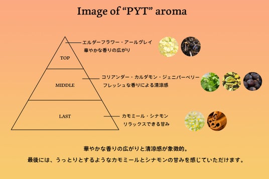 華やかな香りの広がり、そして、フレッシュな清涼感、最後にリラックスを演出する甘みが「PYT」の特徴です。