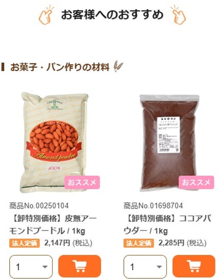 50種類以上の小麦粉を取り揃えているだけでなく、ケーキ型から包材まで豊富な品揃えが魅力的です。発注書機能が便利で、数量を入れるだけで簡単に注文できるのがわかりやすくて助かっています。