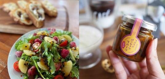 左:パッションフルーツジャムドレッシングサラダ 右:パッションフルーツジャム