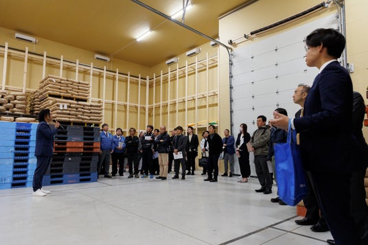 2024年12月からの本格稼働に先立ち、11月28日(木)には倉庫完成記念イベントを開催し、倉庫を利用する米穀関連事業者などに向け説明会を行いました。本倉庫完成を起点として、西三河エリアでより利便性の高い米流通を実現します。