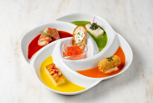 ランチコースの彩り豊かな5種類の前菜にそれぞれお好みの量の「シラリカいくら」をかけてお召上がりください。色々な食材との組み合わせで、いくらの新たな魅力を発見いただける一皿です。