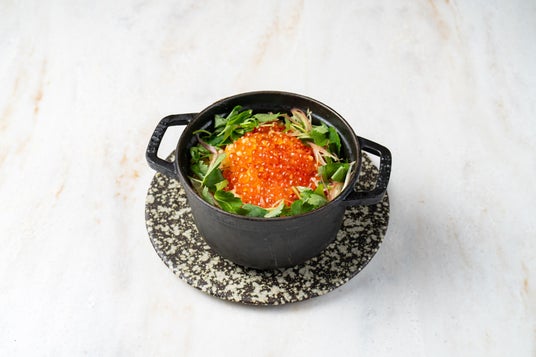 和風ベースのお出汁でサーモンと一緒に炊き上げたココットピラフ。「シラリカいくら」をたっぷりのせて食べる極上の一品です。