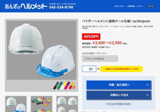 社員20人~30人くらいの工事業者、運送業者を想定し、ヘルメット20個以上ご注文されたお客様を対象としました。