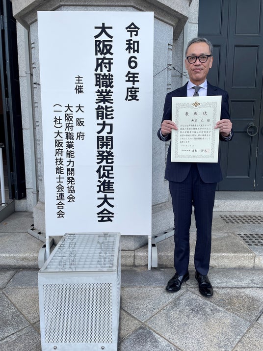 この度「なにわの名工(大阪府優秀技能者表彰)」を受賞する名誉を賜りました。