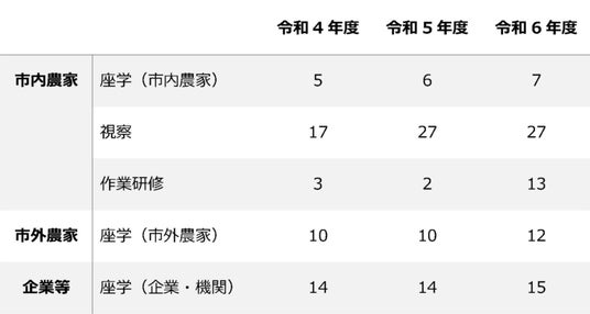 1.令和6年度、座学や研修受け入れなど地元農家は約30軒