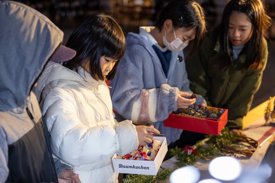 葡萄の生産量全国一位を誇る山梨県では、葡萄の剪定枝の多くが焼却または土壌に還元されていますが、どちらの方法も二酸化炭素が大気中へ再放出されることが課題(*3)になっており、剪定枝の新たな活用が求められています。そこで、点灯式当日は、捨てられるはずのワイン用葡萄の剪定枝をクリスマスリースにアップサイクルするクラフト体験を開催し、小学生はアップサイクルについて学びながら体験を楽しみました。