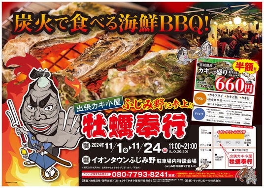 2024年12月25日までの期間限定。 “震災の風化を防ぎながら、東北の復興を支える”冬季限定の「牡蠣奉行」イベント。全国各地で、東日本大震災で被災した宮城県の牡蠣を提供し、同時に地域の活性化促進を目指す。