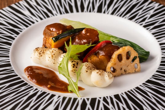 広島県産府中味噌をアクセントに使用し、肉の旨味と味噌の風味を引き出したビーフシチュー。寒い季節に適した温かい料理です。