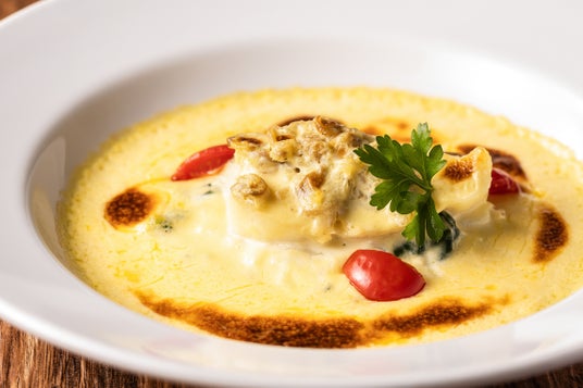 旬の真鱈を白ワインと魚出汁で蒸し焼きにし、煮汁を煮詰めてクリームとソース・オランデーズで仕上げました。真鱈のぷりぷり食感と濃厚なソースの組み合わせが特徴の一皿です。