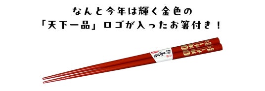 どちらのセットにも入っている、輝く金の「天下一品」ロゴが入ったお箸。