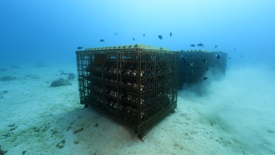 海洋環境へ良い影響をお返しすることを最優先に考え、海洋生物が育ちやすい海の環境をつくる魚礁や藻場礁を全国に設置している岡部株式会社海洋事業部と共に海の環境に合わせ、魚礁や藻場礁の機能も備えた海底熟成専用ワインセラーを独自共同開発しています。