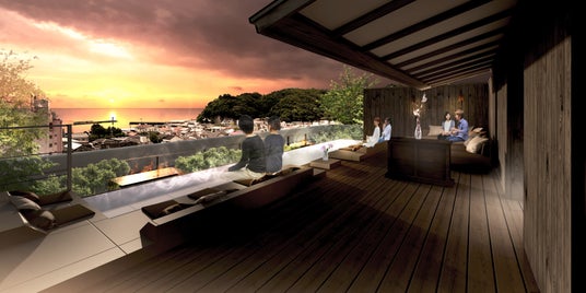 静岡県伊豆市土肥にある温泉旅館『あたら夜 西伊豆』の屋上に、駿河湾を望む絶景の足湯テラスが12月7日に完成。昼間はウェルカムドリンクを飲みながら駿河湾の青い海を、夕方は水平線に沈む夕日を、夜はお酒を楽しみながら満天の星空を眺め、心も体も癒される特別なひと時をお過ごしください。12月7日(土)よりご宿泊のお客様に限りご利用いただけます。