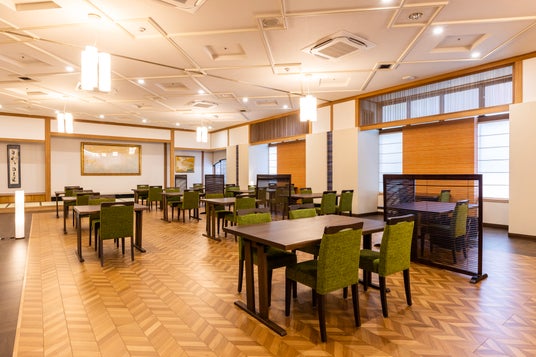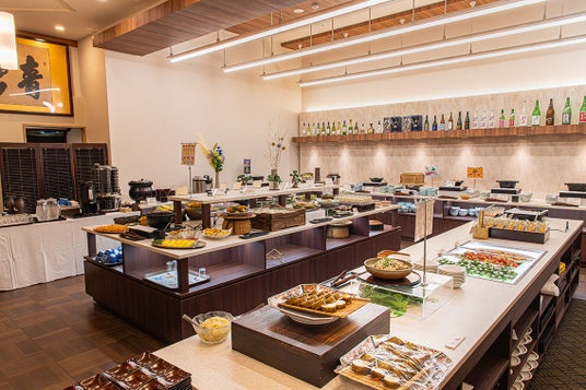 令和5年3月、お食事処をビュッフェ会場としてリニューアルオープン! 椅子席にて朝夕食ともご用意いたします。広々とした空間で、ご家族やご夫婦、友人や仲間達とゆったりした時間をお過ごしください。