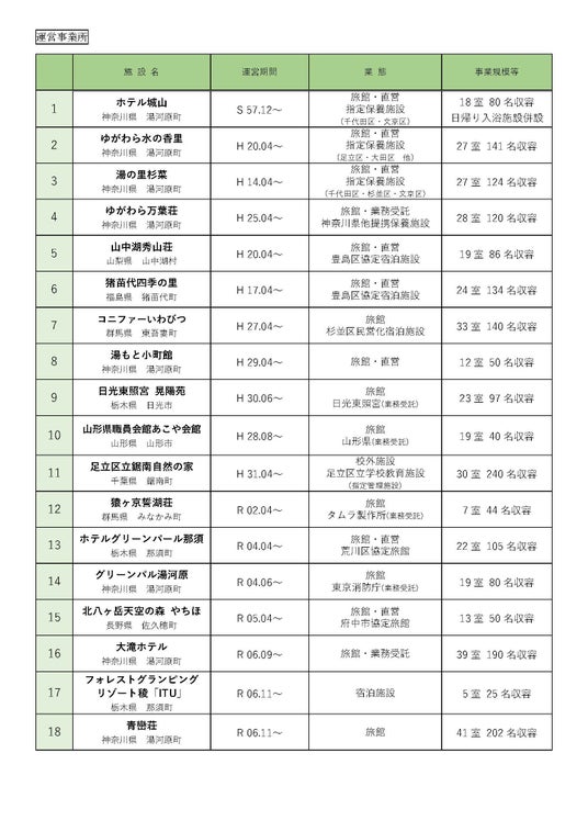 主な事業内容 旅館経営・宿泊施設運営業務委託・レストラン・貸切バス事業・旅行業・
