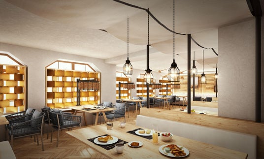 北国の動物達が行き交う巣穴を彷彿とさせる正面玄関を進むと、旅の疲れを癒すリラックス空間としてのロビーが広がります。ここでは靴を脱いでゆっくりお寛ぎいただけるスペースを中心に、北海道の文化・観光について調べられる図書コーナーや良質な音を堪能できるオーディオコーナーを新設。心地よいソファーに身を置きながら、思い思いの時間をお過ごしいただけます。また、フロントでは夜になるとナイトバーに変わり、地元北海道のクラフトビールを中心に提供することで、滞在の楽しみを充実させるサービスの提供を予定しています。