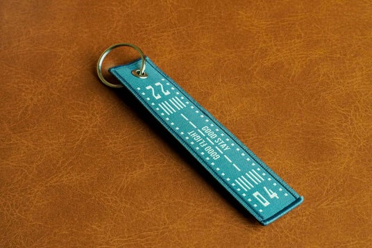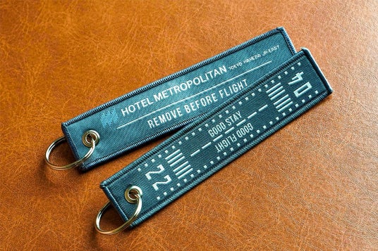 (デザインは1種類のみです。片面に「ホテルロゴ」+「REMOVE BEFORE FLIGHT」、もう片面に「滑走路」+「GOOD STAY」と「GOOD FLIGHT」が施されています)