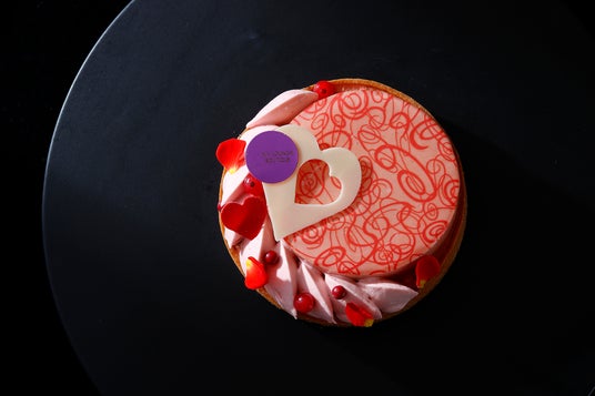 ラズベリーのサンファリーヌとクレームストロベリーをたっぷりと詰めたタルト生地の上に、カシスとライチのジュレをしのばせた甘酸っぱいクランベリーのムースをのせたシェフ渾身の一品です。程よい甘味と滑らかな口どけのストロベリーガナッシュモンテを半月状にしぼり、ローズペタルとグロゼイユ、フランボワーズパールクラッカンを飾り、アーティスティックで華やかな大人のバレンタインケーキに仕上げました。