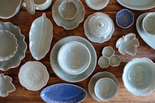 ○カレー食器自宅でレストラン気分が楽しめるインド食器や、タイ北部の伝統食器「セラドン焼き」を販売。
