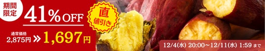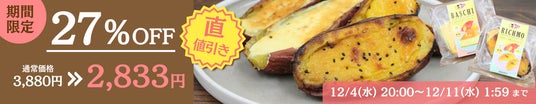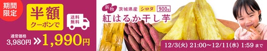 他にも12/10ははお得なクーポンが発行され、『冷凍紅あずまの焼き芋』や、『さつまいも餃子』、干し芋や、さつまいものお菓子など厳選された商品もセール価格となっております。