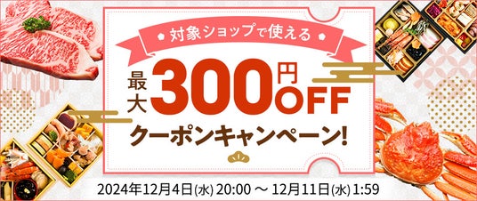 対象期間中、対象ショップで使える最大300円OFFクーポンをプレゼント