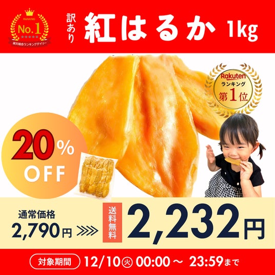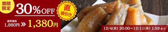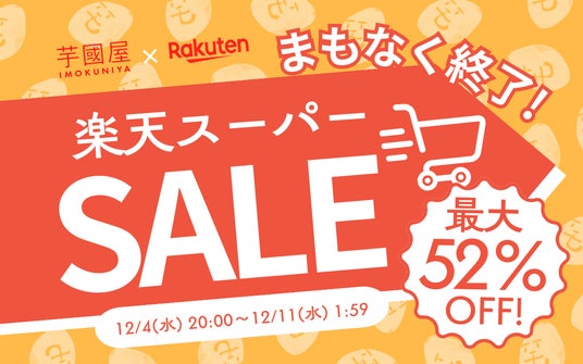 創業からわずか2年で、ネット通販1日1万件以上の注文を記録し、楽天市場で総合ランキング1位を獲得した芋國屋(本社 千葉県流山市)は年に4回のビックイベント楽天スーパーセール(12/4 20:00~12/11 1:59)のラストスパート、人気商品を大特価で販売致します!