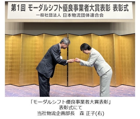 本賞は、一般社団法人日本物流団体連合会が創設した、モーダルシフト取り組み優良事業者を公表・表彰する制度で、「モーダルシフト優良事業者賞」(連携・協働部門)は、荷主や物流事業者等の連携・協働により、貨物、輸送区間、輸送モード等を広く組み合わせて、多くの関係者を包含するモーダルシフトの仕組みを構築した事業者の中で、特に秀逸な成果を達成した事業者に対して授与されるものです。