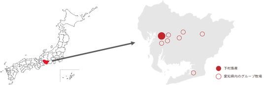 愛知県内のグループ8牧場の分布(宮崎県・長野県を含め10牧場でグループを形成)