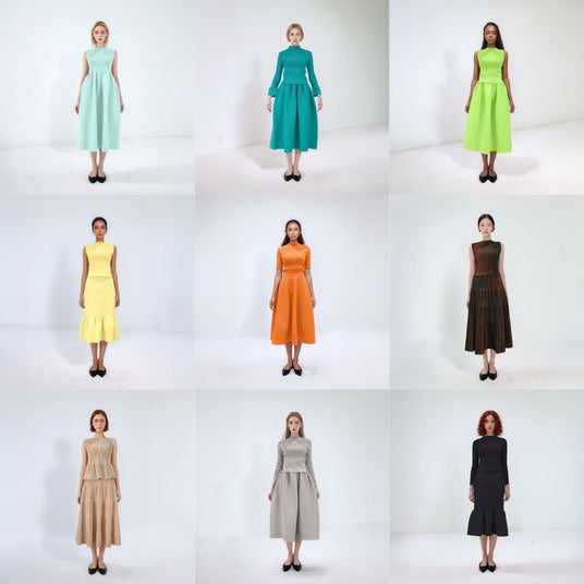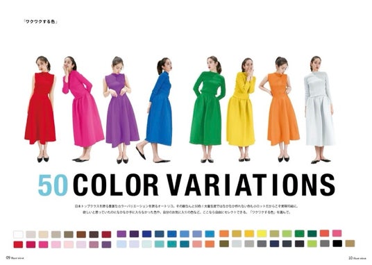 単色のホールガーメントシリーズを中心に、3Dプリーツ(3色の糸を使い角度で色が変わる)シリーズの人気カラー4色を合わせて構成しました。