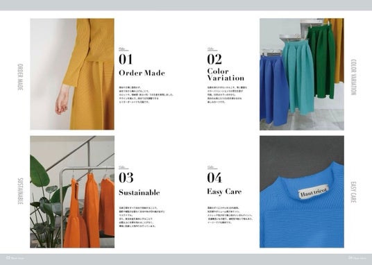 受注生産を中心としており、個人に合わせて丈の調整や豊富なカラー展開など大量生産では手が届かなかったところまで丁寧に対応している。