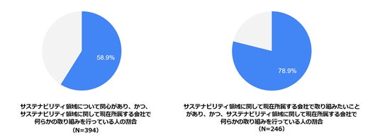 サステナビリティ領域について関心がある方(394人)の中で、サステナビリティ領域に関して現在所属する会社で何らかの取り組みを行っている人の割合は 58.9%、