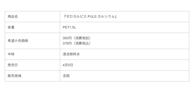 今回、ゼロカロリーで楽しめる「カルピス」に、不足しがちな栄養素である「カルシウム」を加え、皆様の健康的な生活づくりを応援します。