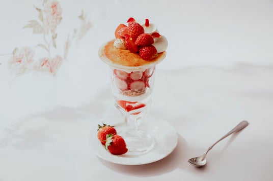ラアイス、苺、苺ゼリー、パイクラム、クリームとスポ