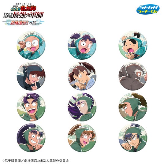 本くじは『劇場版 忍たま乱太郎 ドクタケ忍者隊最強の軍師』の公開に合わせ、劇中に登場するキャラクター達のセガオリジナル描きおろしイラストを使用しています。9等級に加え、くじの最後の1枚を引いたお客さまが貰える“ラストラッキー賞”で構成されるハズレ無しの商品です。イラストボードやアクリルスタンド、缶バッジには描きおろしイラストを使用し、アクリルスタンドを収納できるポーチもご用意しています。また、「土井半助」、「乱太郎」、「きり丸」、「しんべヱ」のぬいぐるみなど、ファン必見のラインナップとなっております。店舗からなくなり次第終了となります。