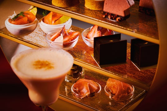 夜の部では、赤・白ワインやカクテルなど、アルコールを含むドリンクが2時間フリーフローでお得に楽しめます。「コールドビーフと赤キャベツのマリネ」など夜の部だけのアペタイザーも登場。梅田の中心部、大阪駅の喧騒が嘘のように、「THE LOBBY LOUNGE」は輝く夜景と静寂に包まれた別世界。夜のアフタヌーンティーはバレンタインのデートにもぴったりです。