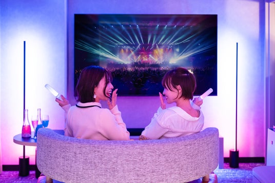 75インチの大画面テレビと音や光の演出で夜遅く、心ゆくまで推しとの時間をお楽しみください。