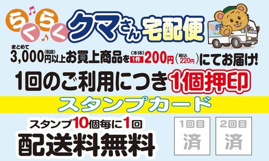 『らくらくクマさん宅配便』は、実施店舗全店で年末12月31日(火)までサービスをご利用いただけます。