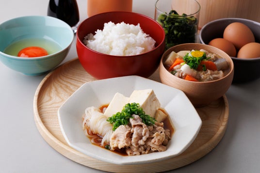 季節の肉豆腐 TKG 定食シンプルかつ上品な仕上がりの肉豆腐の定食。高級ブランド卵で"スキヤキスタイル"でワンランク上の味わい。やわらかいお肉と季節の野菜がたっぷり入った肉豆腐に、ふっくらと炊き上げたご飯と卵かけご飯(TKG)が絶妙にマッチ。特製のたれで味わう、心も体も満たされる一品です。