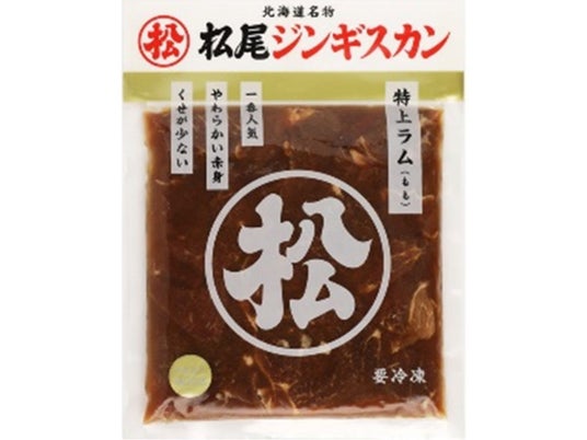 ●【マツオ】 味付特上ラム400g「松尾ジンギスカンの人気No.1。」生後1年未満の仔羊のモモ肉の脂身、スジを丁寧に取り除き、松尾ジンギスカン秘伝のタレに漬け込んでいるため羊肉独特の香りが少なく、はじめての方でも抵抗なくお召し上がりいただける製品です。