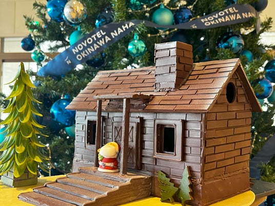 ノボテル沖縄那覇(沖縄県那覇市 坂本公敏 総支配人)では、クリスマスシーズンを楽しむシュトーレンの販売とチョコレートハウスの展示を1階 グルメバーで行っております。ノボテルのシュトーレンは、ほんのりラム酒と沖縄産黒糖を練り込んだ生地にドライフルーツを混ぜこみ、一晩休ませた後に発酵させ焼き上げています。オーブンから取り出し熱々の状態で北海道産の発酵バターをしみ込ませています。焦がしバターにしてから染みこませるため香ばしいバターの風味や沖縄ならではの黒糖独特の香りが特徴的。香りを演出するのはシナモン、アニス、オールスパイスで香りづけしたドライフルーツ。大人はもちろん、お子様も一緒にクリスマスまでお楽しみいただきたいというベイカーの思いがこめられています。シュトーレンは12月のアフタヌーンティーでもお楽しみいただけます。グルメバーでは、グリム童話「ヘンゼルとグレーテル」に登場する家をイメージしたチョコレートの家の展示も行っています。
