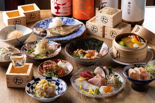 青山一丁目ツインビルB1にオープンした「魚たけちゃん」は、昼は焼き魚定食、夜は日本酒と一品料理が楽しめる大衆酒場です。店内で精米したてのご飯との相性も抜群。お通しなし、税込み価格で気軽に利用でき、一人でもグループでも楽しめます。落ち着いたダイニングエリアとスタンディングエリアがあり、様々なシーンに対応。近隣住民の皆様にとって「ちょうどいい場所」を目指しています。