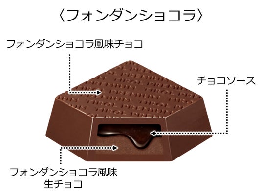 1.フォンダンショコラ風味のチョコの中に、生チョコと高粘度チョコソースを組み合わせ、