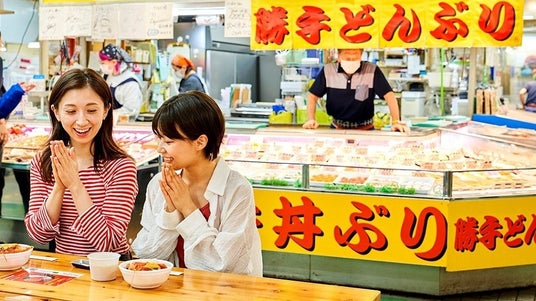 北海道三大市場・釧路和商市場名物「勝手丼」で海の幸を満喫。