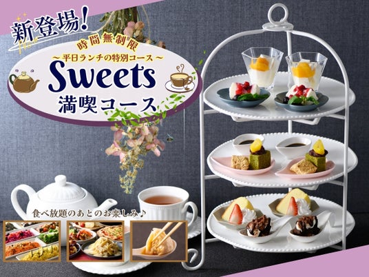 この度、2024年12月19日(木)より、平日ランチ限定にて、和洋中のごちそうとともにスイーツプレートが『時間無制限』で楽しめる!とってもお得な『スイーツ満喫コース』が新登場!