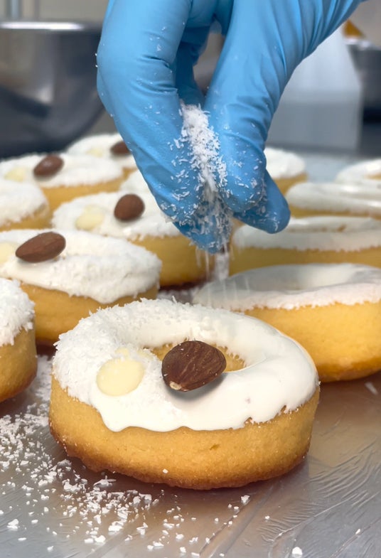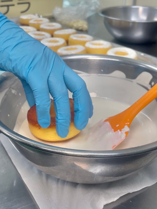 一つ一つ職人の手作業で作るこだわりの美味しさクリスマスドーナツは、一つ一つが職人の手作業。