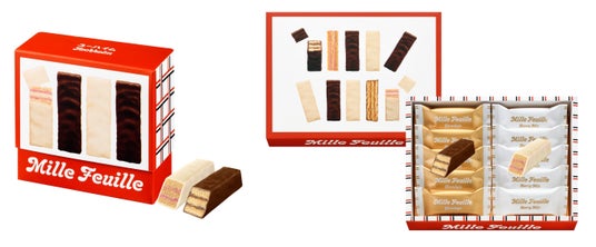 7.8.ミルフィーユバターの風味豊かなサクサクのパイにクリームをサンドして、チョコレートでコーティングしました。香ばしいジャンドゥーヤクリームにはミルクチョコレートを、甘酸っぱいベリーミックスクリームにはホワイトチョコレートを合わせました。サンドクリームも香料や乳化剤を使用していない、ユーハイムオリジナルクリームです。※個包装入り