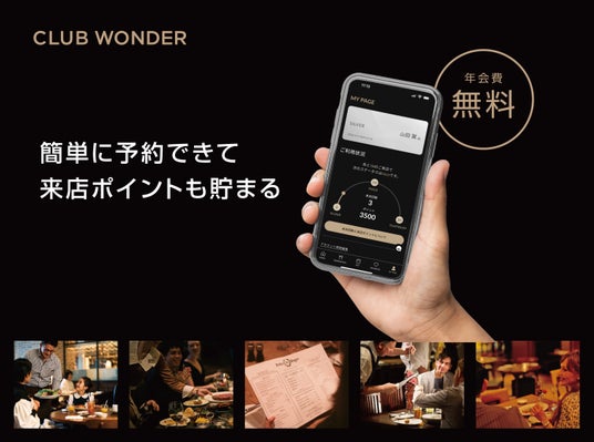 ワンダーテーブルは、会費無料の会員制プログラム「Club Wonder」を開始しました。会員になると、スマートフォン一つで、いつでもどこでも手軽に店舗の予約ができ、来店ポイントを貯めてデジタルギフトカードを獲得できます。また、来店回数に応じて会員ステータスがアップし、人気の高い週末や祝日のディナータイムでも、スムーズにご予約いただけるなど、様々な特典が追加されます。