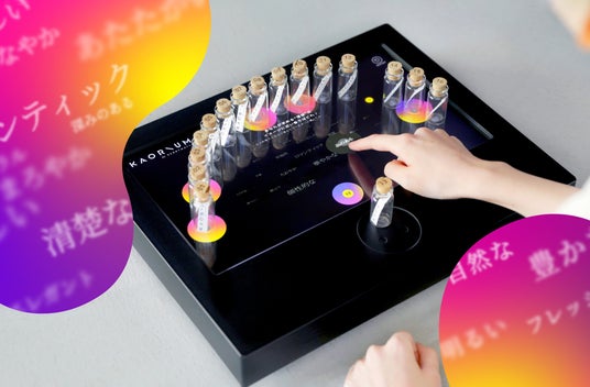 「KAORIUM」は、香りと言葉を相互に変換するAIシステムです。最先端のテクノロジーによって、曖昧で捉えにくい香りの印象を言葉で可視化したり、ある言葉に紐づく香りを導き出したりすることを可能にします。