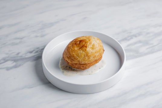 帆立ムースとトリュフのパイ包み焼き ほうれん草と春菊 ベルモットソース
