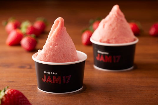 また、JAM17 BARでは、いちごを使ったオリジナルカクテル2種を、JAM17 GELATERIAでは、いちごジェラートをはじめ、パウンドケーキやデニッシュなどご自宅でもいちごをお楽しみいただけるテイクアウト商品をご用意いたします。