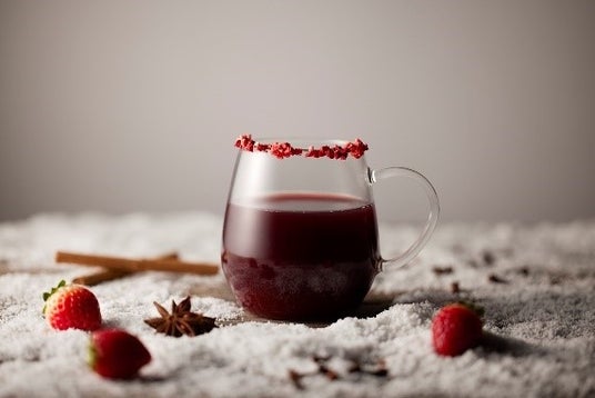 寒い冬に皆でわいわい集まって飲むホットワインをアレンジしました。スパイスと甘い香りに包まれるほっと安らぐ味わいのカクテルは、底に沈んだいちごジャムをかき混ぜてお好みで味を調整しながらお召し上がりください。